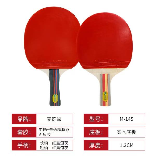 麦德姆 乒乓球拍。规格;厚度;1.2l厘米,长柄,短柄。材质;双面全反胶。货号:M-145