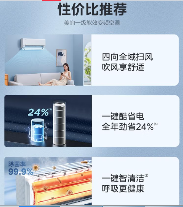 美的(Midea) 美的空调 京绽Pro 1.5匹挂机 变频冷暖 新一级变频壁挂式空调 全域扫风 KFR-35GW/MJ1P