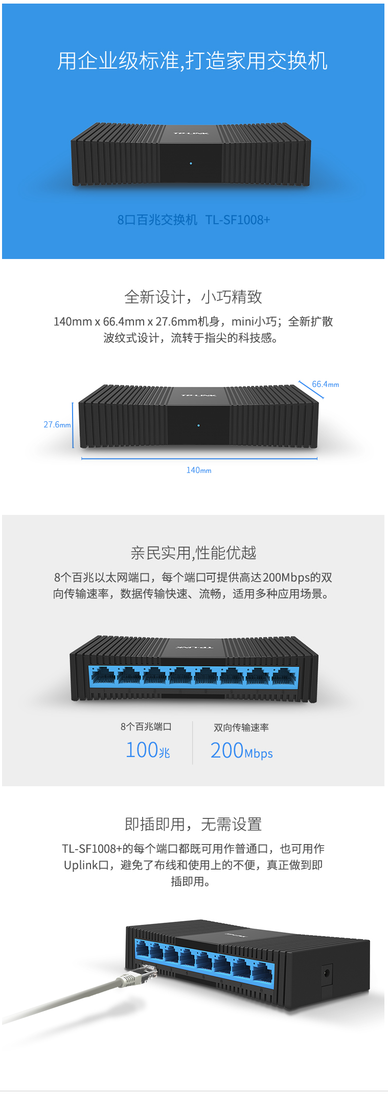 普联(TP-LINK) TL-SF1008+ 8口 百兆 交换机
